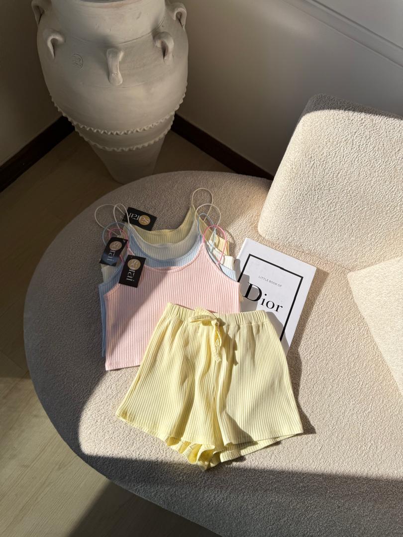 ست کراپ شلوارک پنبه کرکره ای کپی