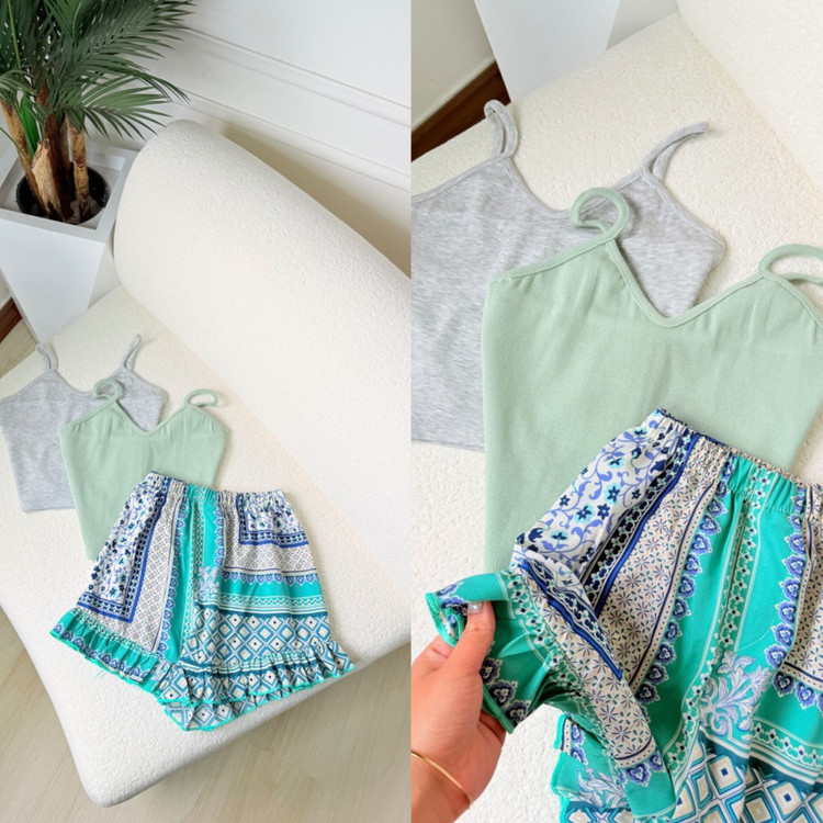 ست کراپ شلوارک فیروزه